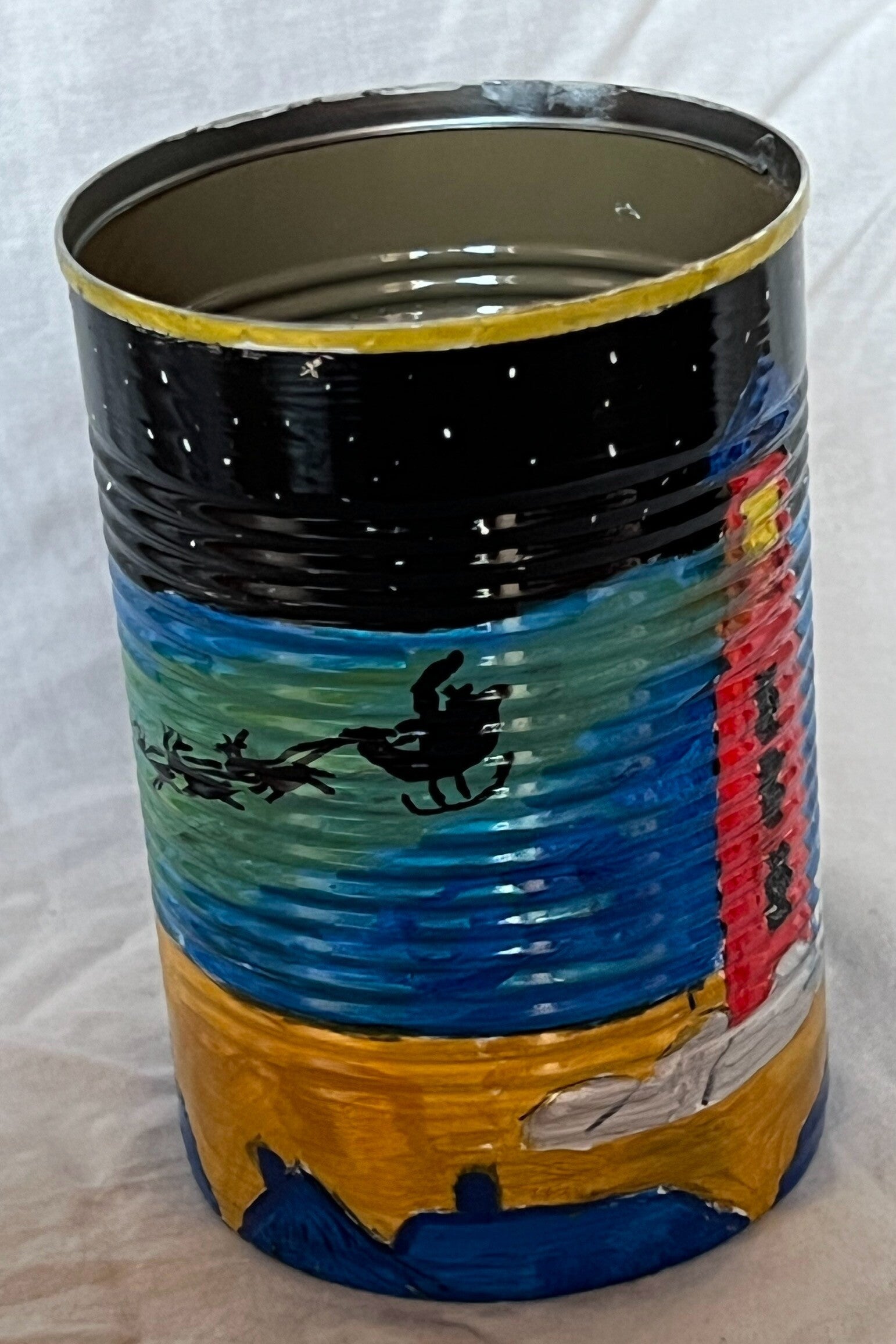 Ce pot de rangement avec sa scène de Noël est idéal pour compléter un cadeau et pour ranger vos pinceaux, règles, crayons...
