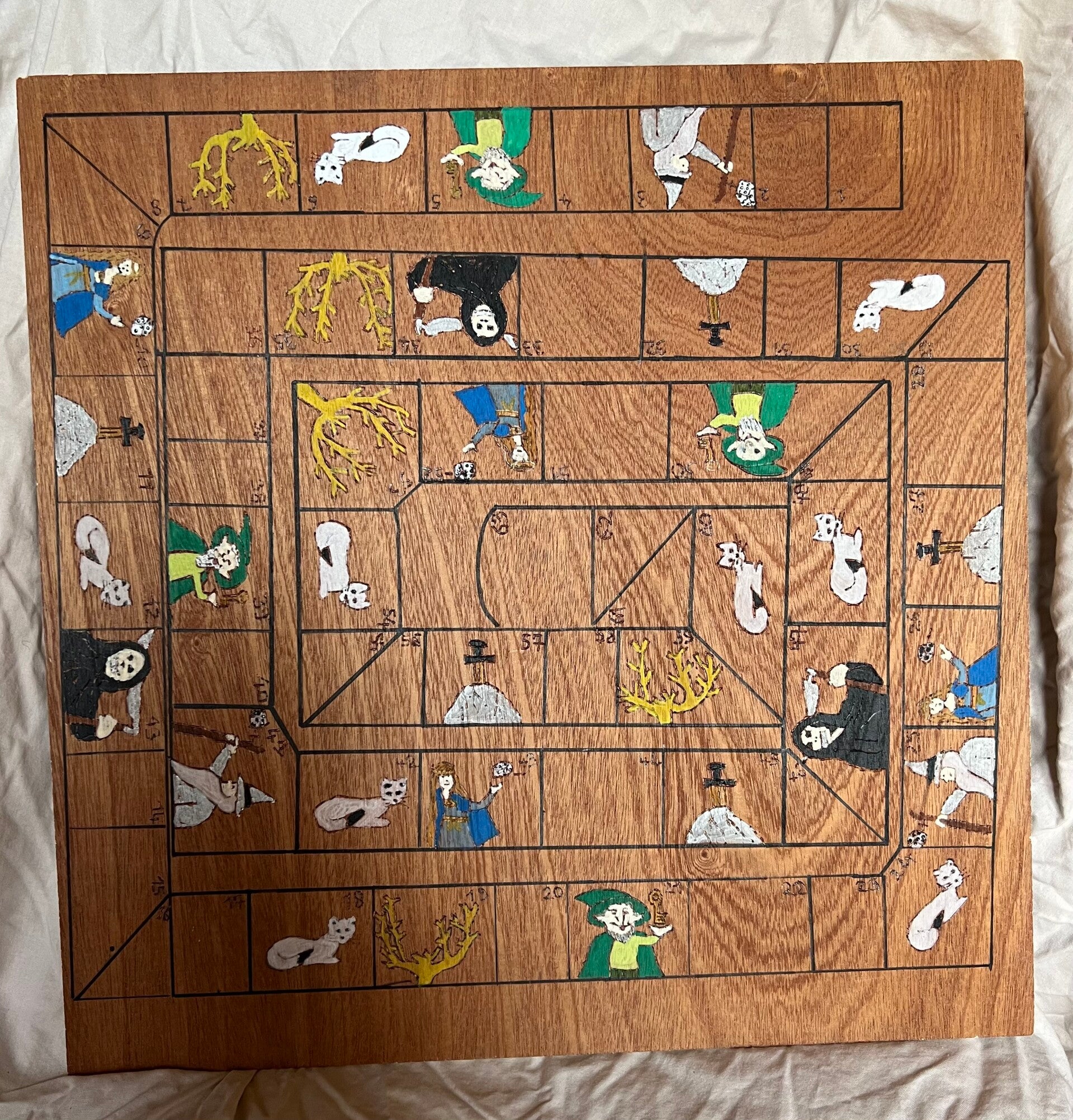- un plateau en bois 40*40 cm pyrogravé, peint à la main et vernis