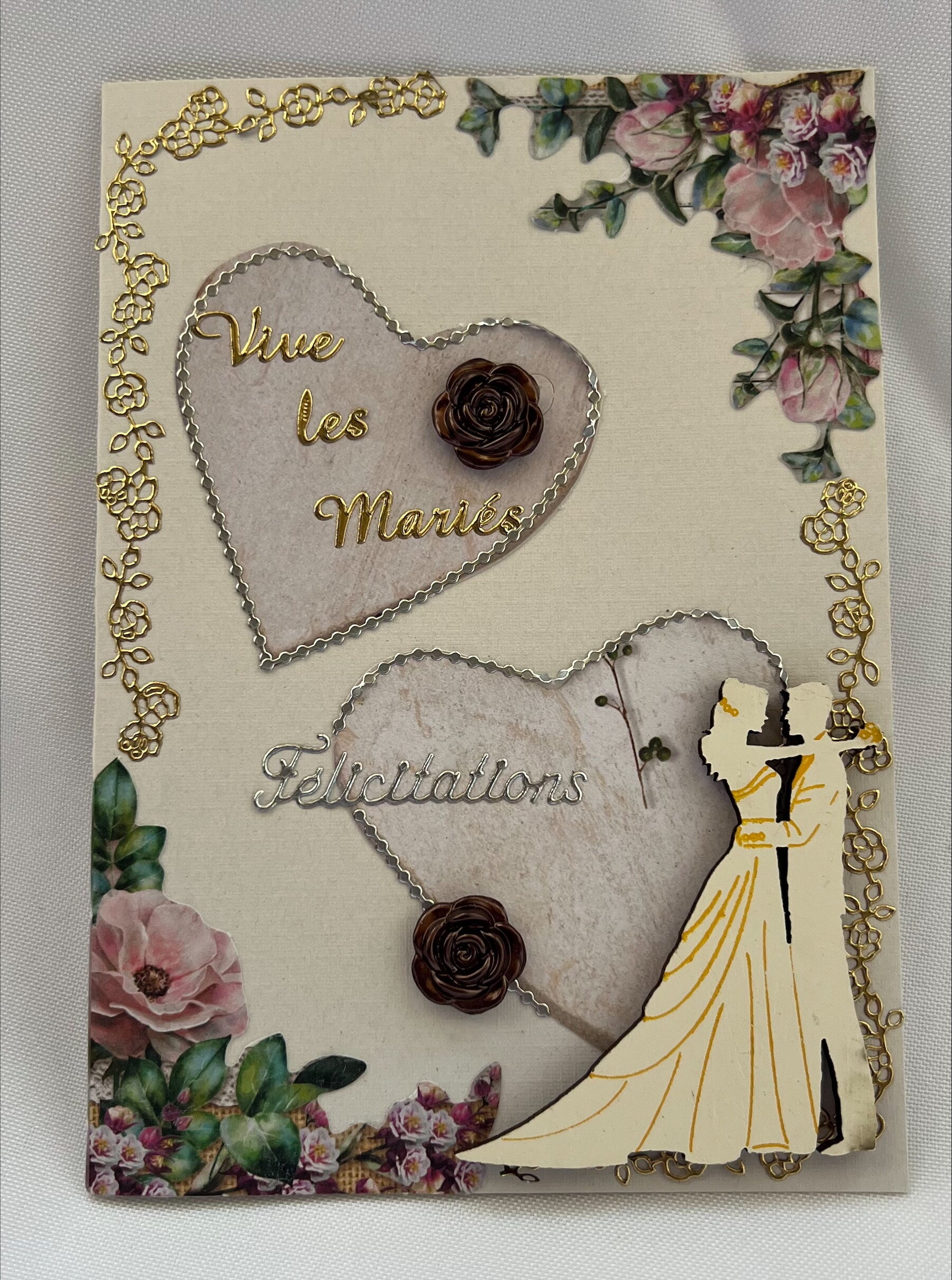 En accompagnement d'un cadeau ou à envoyer, souhaitez tous vos voeux de bonheur aux nouveaux mariés avec cette carte faite main.