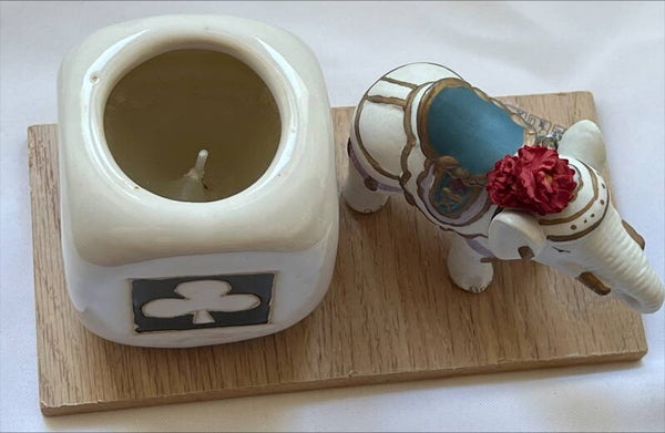 Décoration faite main avec sa bougie artisanale et son élephant blanc
