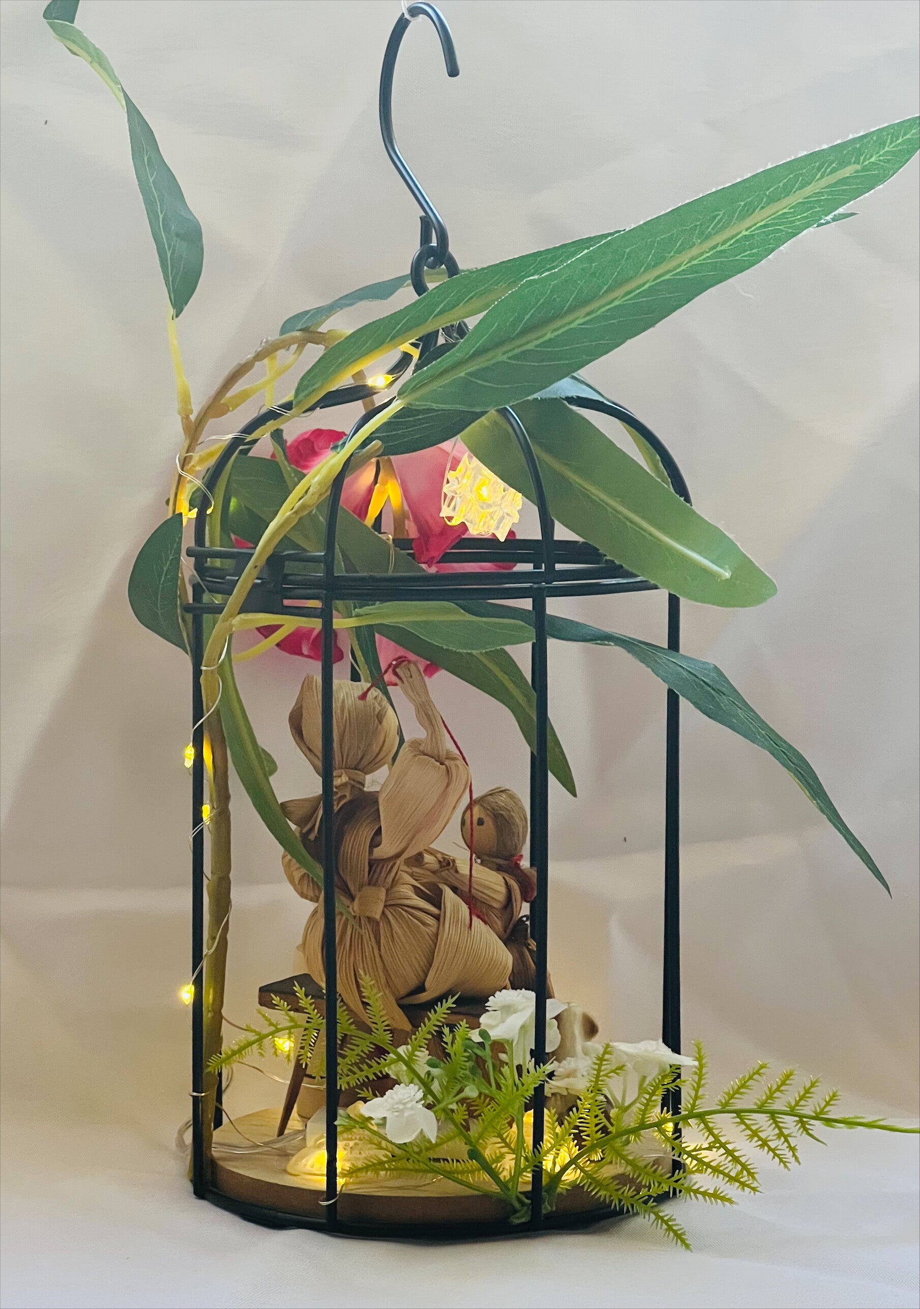 Cette jolie décoration d'intérieur à suspendre, réalisée à partir d'objets auxquels j'ai souhaité donné une seconde vie et sa guirlande led donnera une touche printanière à votre maison.