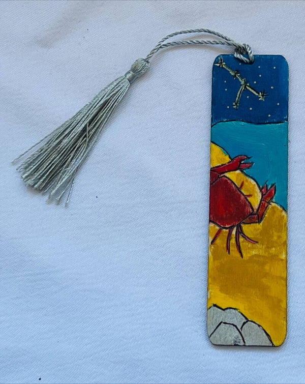 Au choix, 3 marques page du signe du cancer pyrogravés, peints à la main et vernis.
