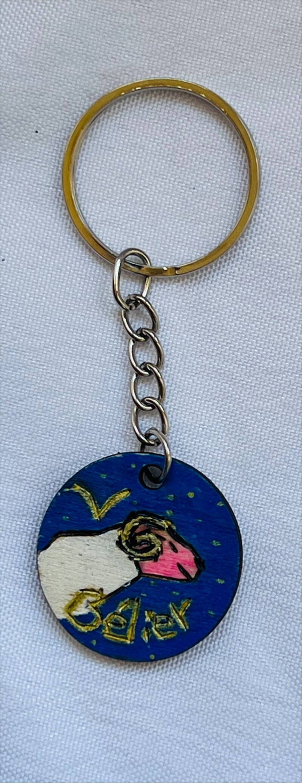 Au choix, porte clés du signe astrologique du bélier pyrogravé, peint à la main et vernis.