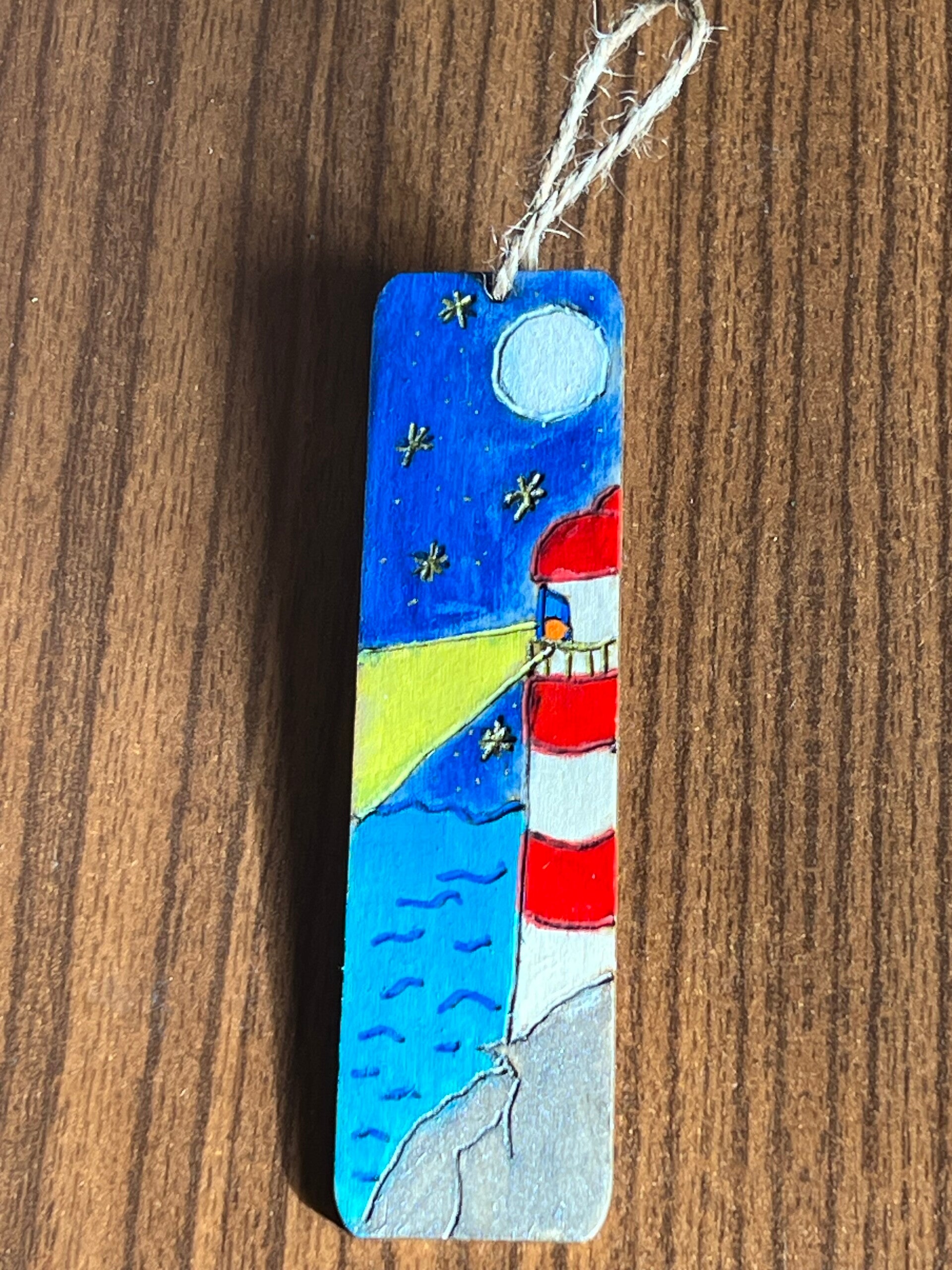 Marque page pyrogravé, peint à la main et vernis sur le thème de la mer.